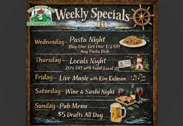 Come by all January and February for our new lunch specials! 🐸🏴☠️ Open Wednesday - Sunday all Winter long!