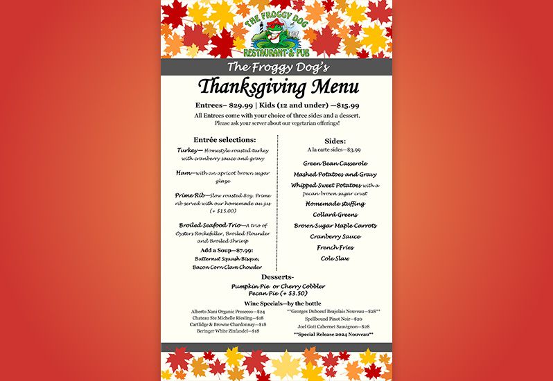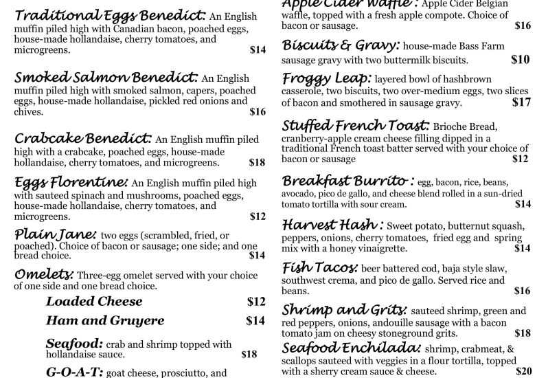 Spend your Sundays at The Froggy Dog. Our Summer Brunch Menu has something for everyone. Brunch is served 11 am - 4 pm on Sundays.